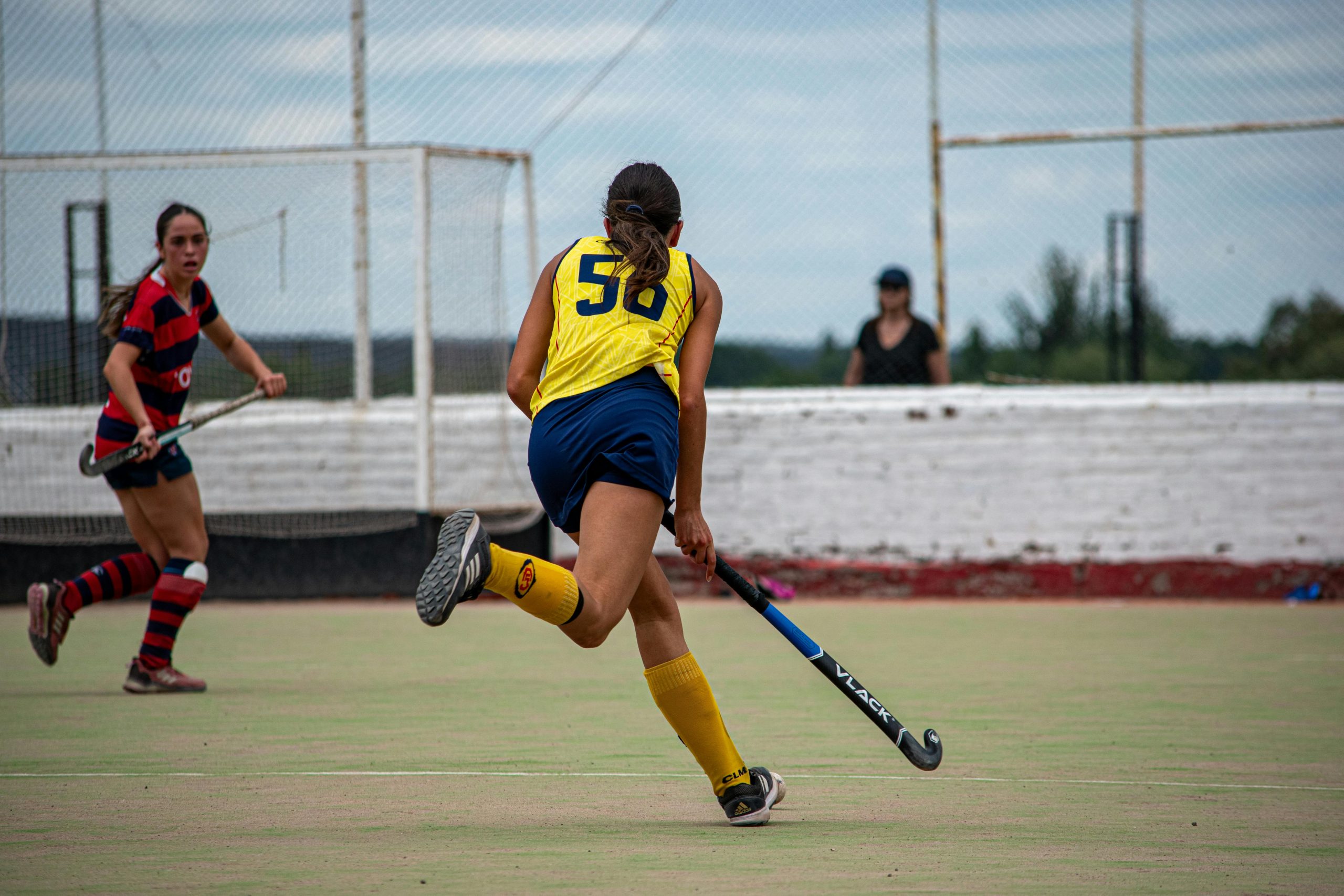 Keep your stick low and angle your body at 45 degrees to block the middle of the field. Many players attempt to sprint straight at the attacker to make a hero tackle, which completely opens up the center of the pitch and allows the attacker to easily cut inside toward the goal.